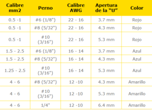 Calibres desde 10 AWG (6mm2) hasta 1000 MCM (500mm2).
